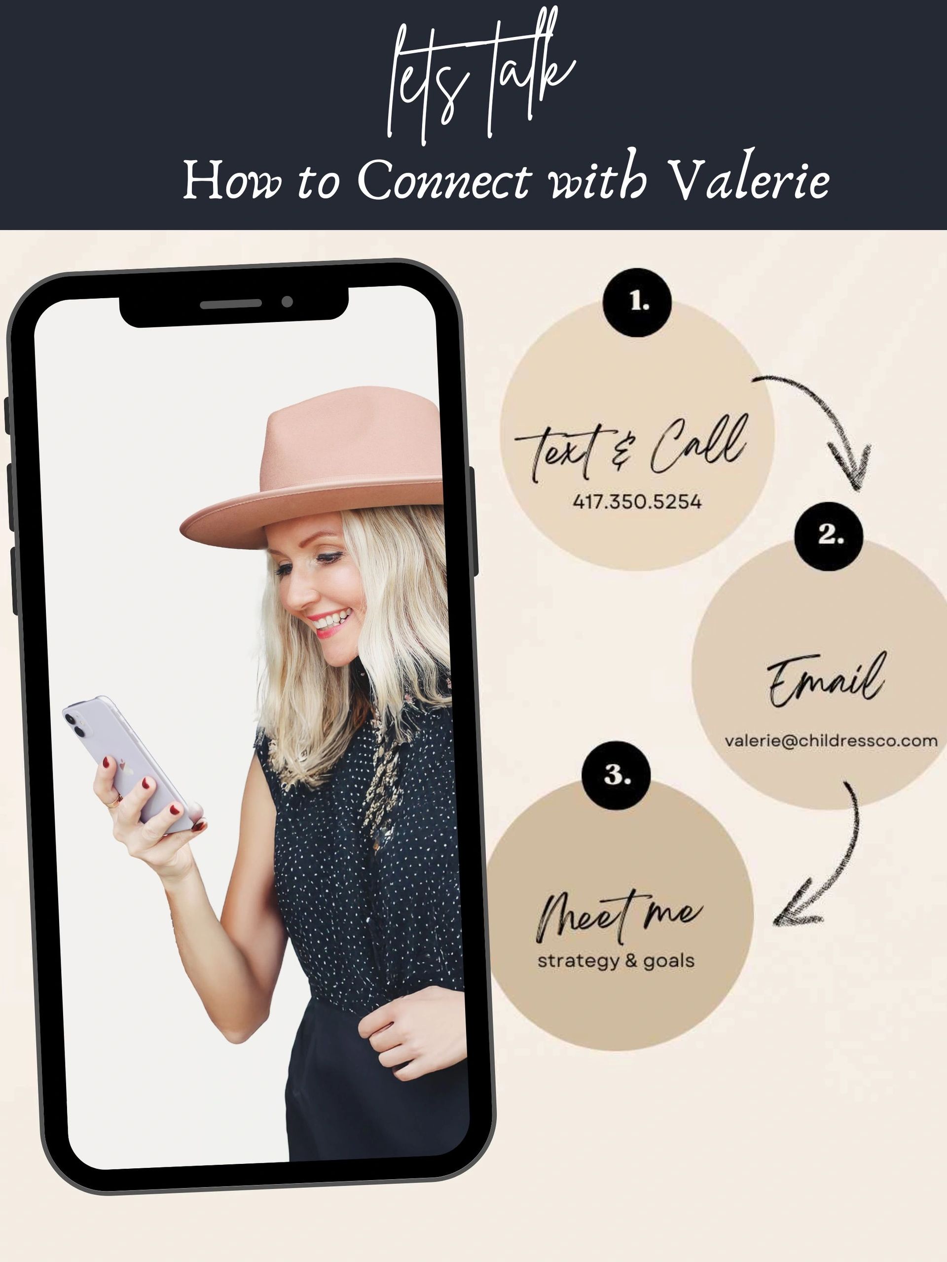How to reach Valerie directly cell | (417) 350-5254 email | valerie@childressco.com Keller Williams Office | 417-883-4900